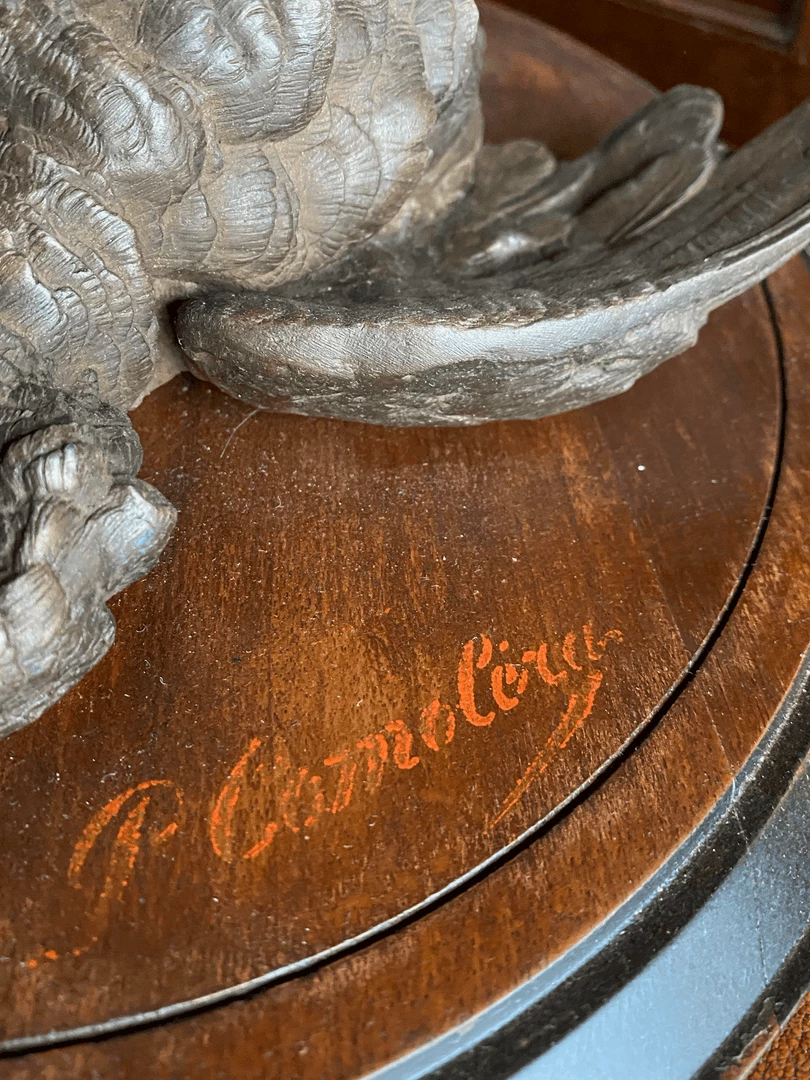 The title sort of says it all. But I’ll chime in to say these are very special and Paul Comoléra (1818 – 1897) was a sculptor of very high regard in Paris, who studied under Rude in Paris and exhibited at the Salon from 1847 until his death in 1897. His finely detailed and realistic models, particularly birds, have earned him a place among the most skilled animalier sculptors. 18″ x 13″