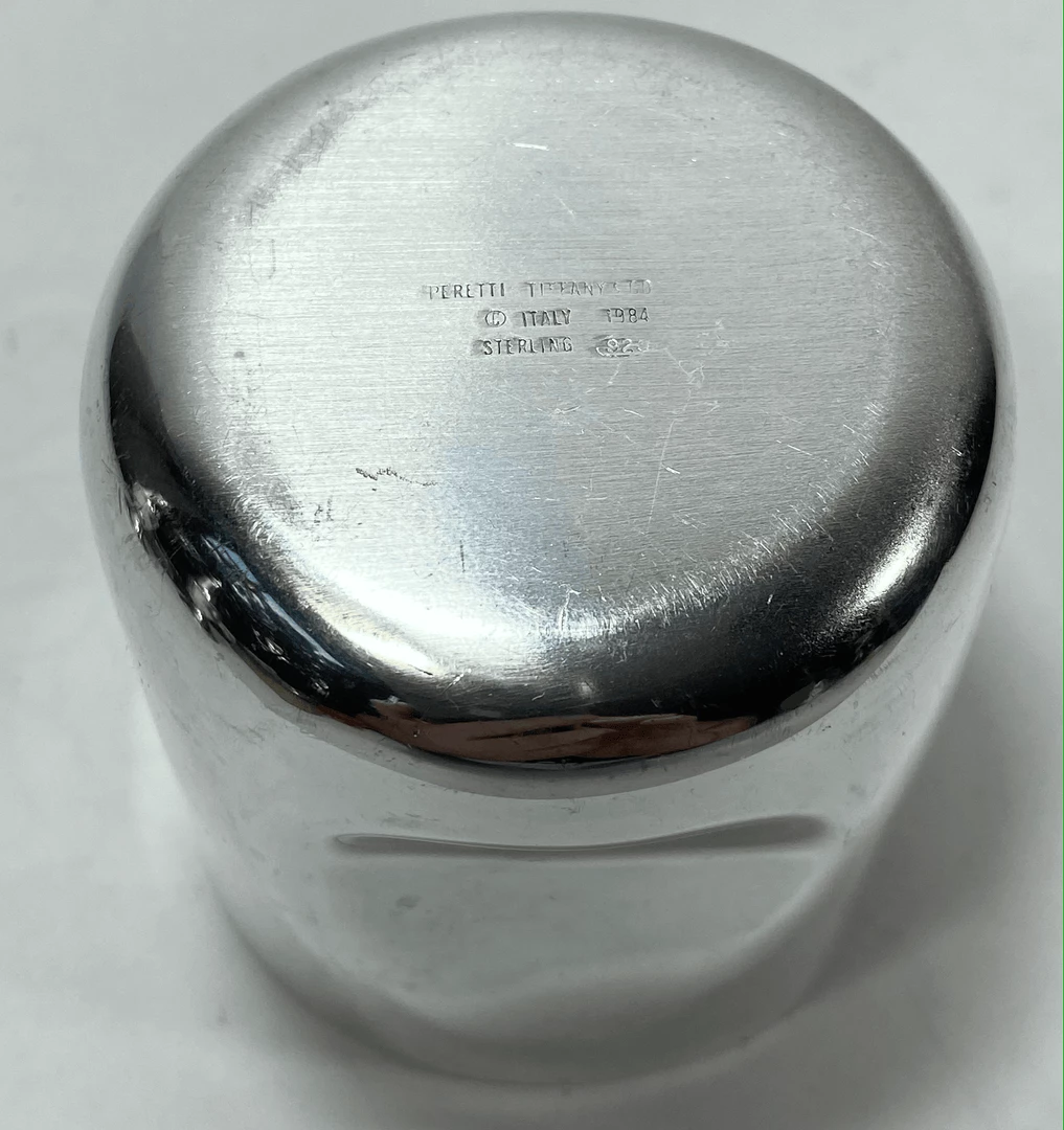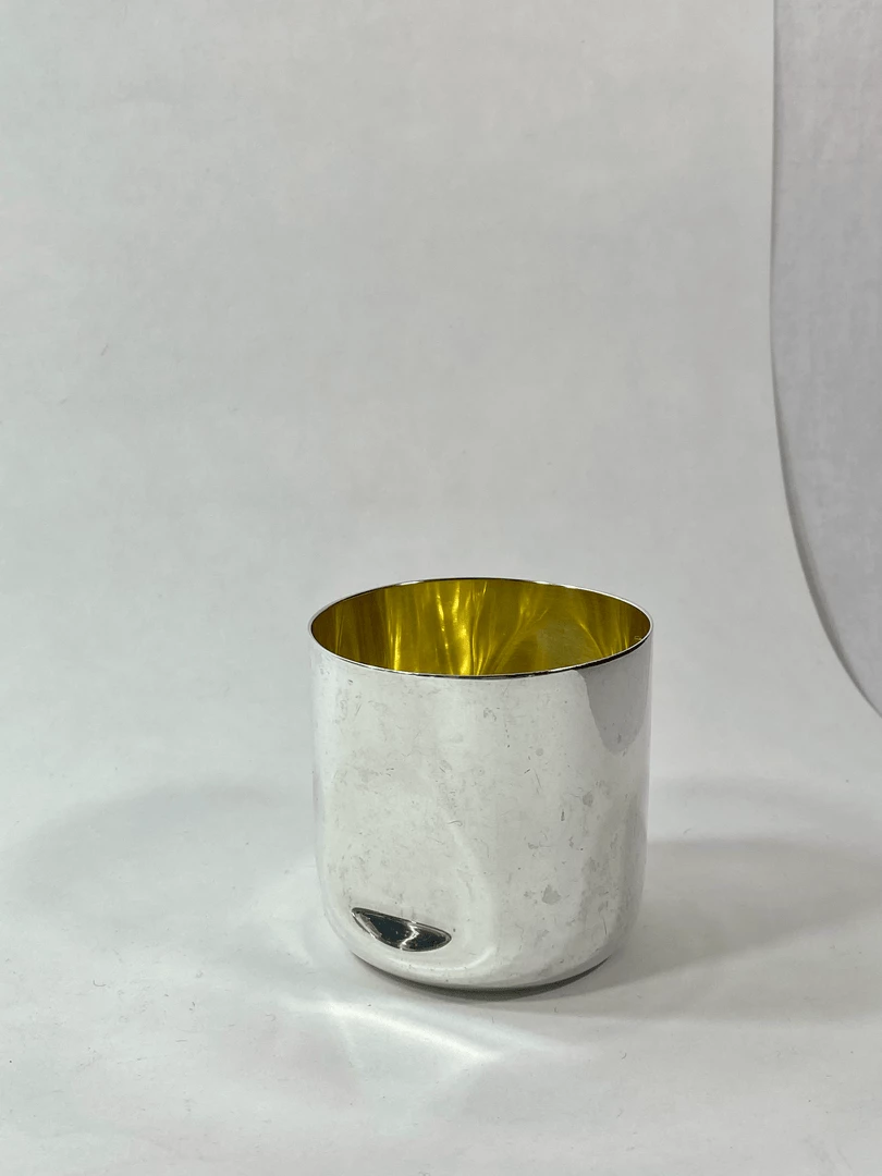 This cup is a smaller version of the thumbprint cup that I have not seen offered. It measures 2.25″ by 2.25″ inches and has a 24kt gold vermeil on the interior.