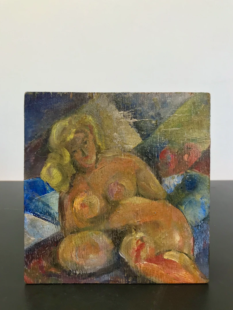 I do love a small painting and am always on the hunt for wonderful pieces that fit into many spaces. This small oil painting on wood in the Russian expressionist style circa 1920-1930 measures 7 3/4 inches by 7 1/2 inches.Â