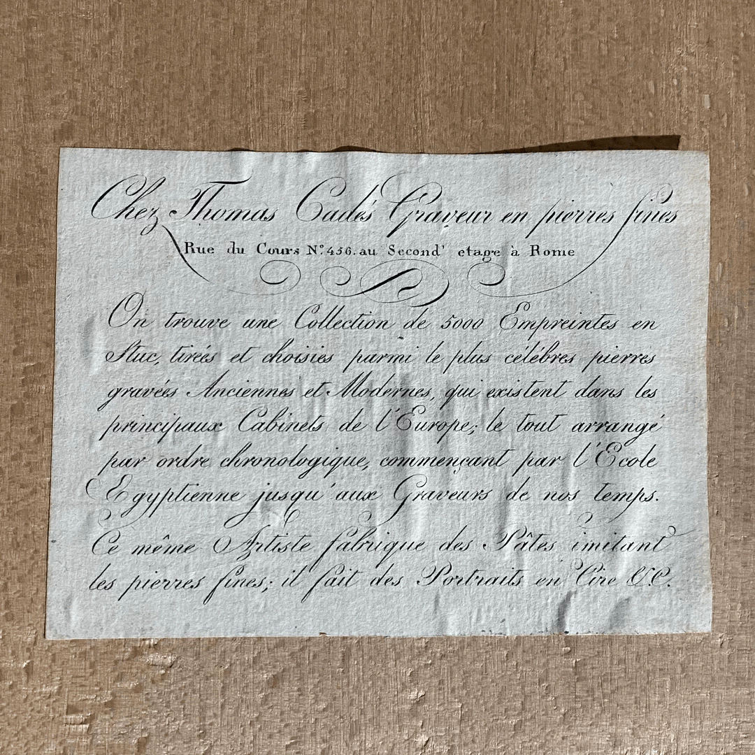 Chez Thomas Cades Graveur en pierres fines. Rue du Cours, No. 28 au second ètage a Rome