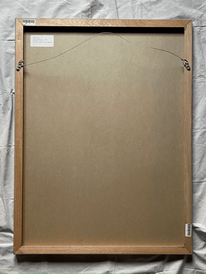 Notation on back of artwork notes that the piece can be hung in any direction.